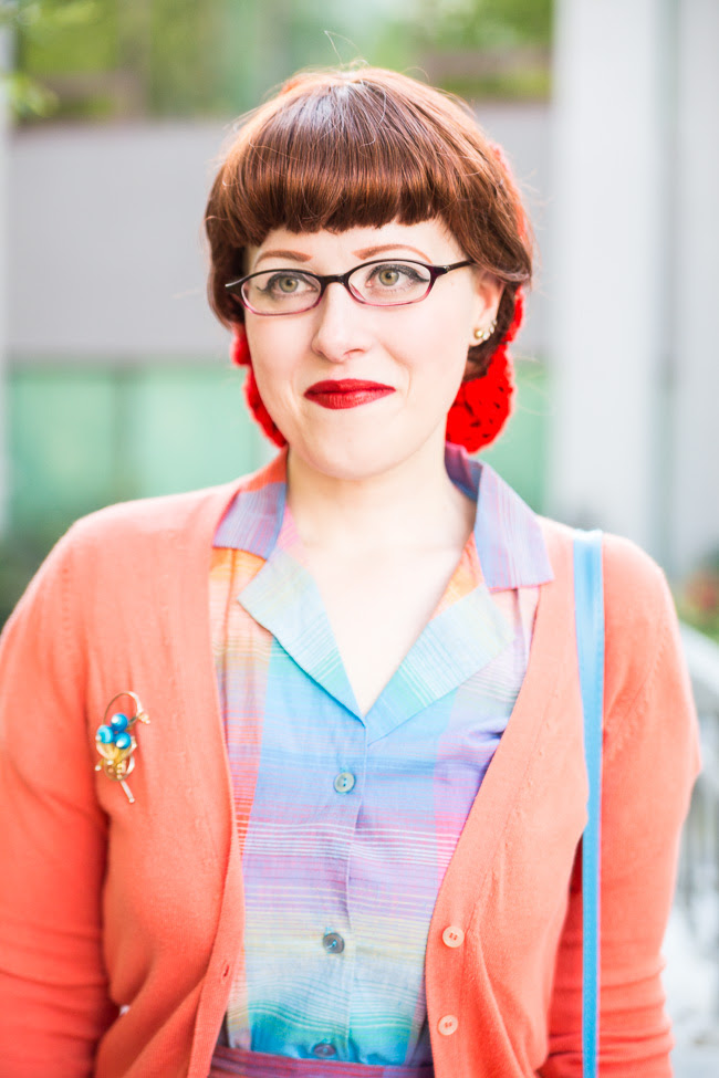 DeleteThis is seriously so adorable. You remind me of a 40's gal who stepped out of a photoboth photo set. Coral is a really good color on you as well.